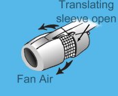 This is normally achieved using pneumatic bleed air taken from the engine compressor, though the ‘bucket’ type uses hydraulic actuation.