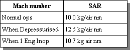 Some rough Specific Air ranges are used for the B727. They are: