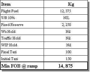 Total flight fuel then is 12, 375 kg. To this you add the reserves for depressurised ops. Refer to fuel summary.