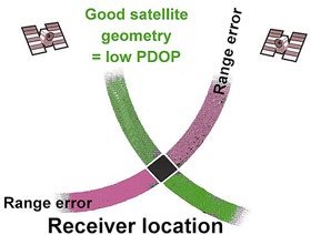 Fig GPS 9b. Low PDOP means small position error. |