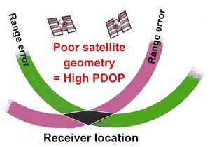 Fig GPS 9d. High PDOP means large position error.
