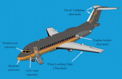 Some light business jet aircraft use electrical power to heat the leading edges, though larger jet aircraft use hot bleed air from the N2 engine compressor to accomplish this. The parts of the aircraft that are normally electrically heated are the pitot/static vents, cockpit windscreen, Angle of Attack (AoA) vane, outside air temperature probe, and the radar nacelle (nose cone). Intake EPR probes and fan intake cones are sometimes electrically heated, and sometimes by compressor bleed air, dependant on engine type.