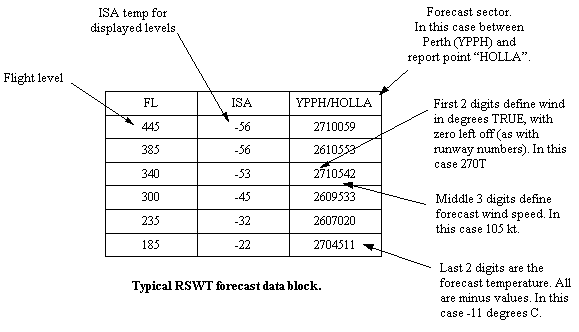 forecast winds and temperatures for the levels of FL185 to FL445, which covers most common